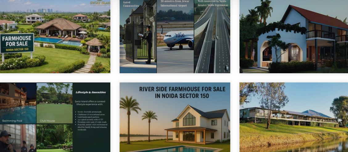 Swizz Island is a thoughtfully planned, luxury riverside farmhouse society in Noida’s prime Sector 150. With minimum plots of 1008 Sq.Yd and an attractive launch price, the project combines peaceful riverside living with modern infrastructure — gated access, 24/7 security, landscaped promenades and a clubhouse. Strategically located near the expressway and Jewar Airport, Swizz Island is ideal for weekend homes, holiday rentals and long-term investment.